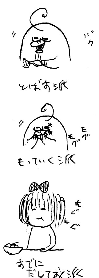 お兄ちゃんは、枝豆ごともってって咥えて豆を出して食べる派、