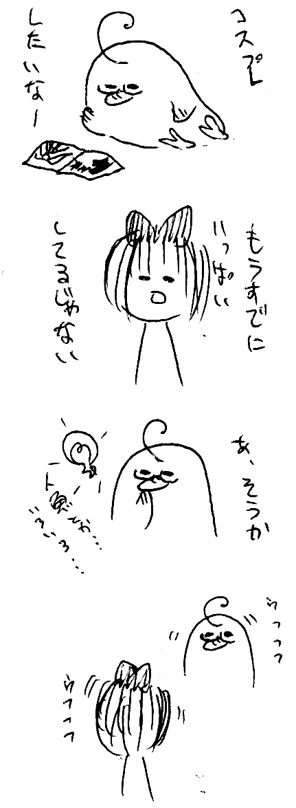 コスプレ雑誌を見てかもめさん、コスプレしたいなーと呟いていました。