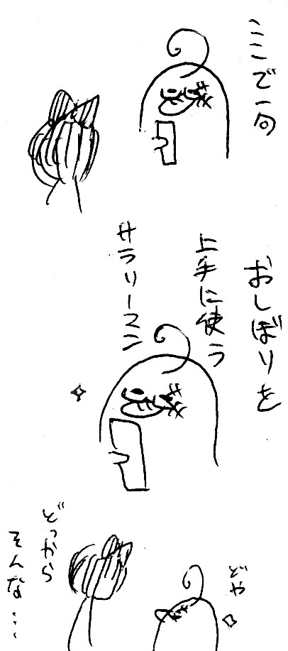 「おしぼりを 上手に使う サラリーマン」